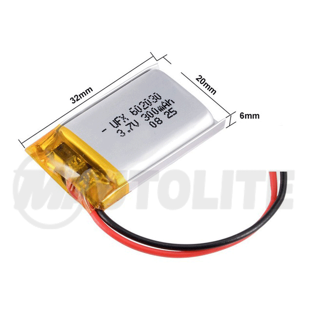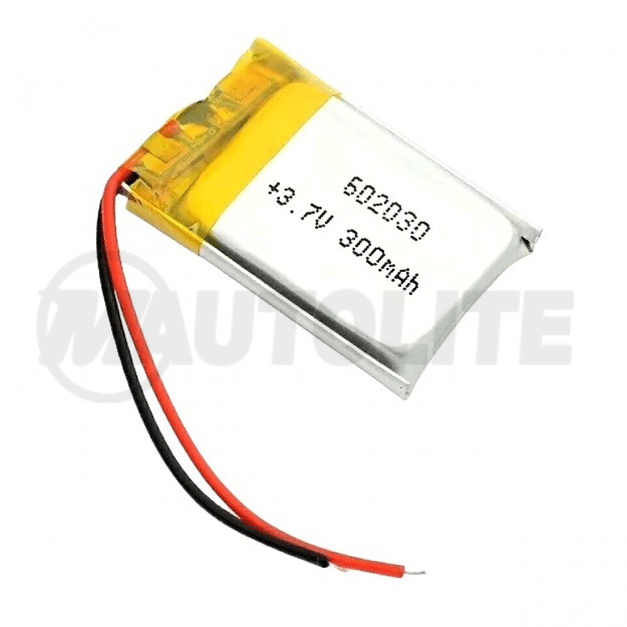 Batería recargable de polímero de litio de 3.7V y 300mAh con un diseño en miniatura, ligera y portátil.