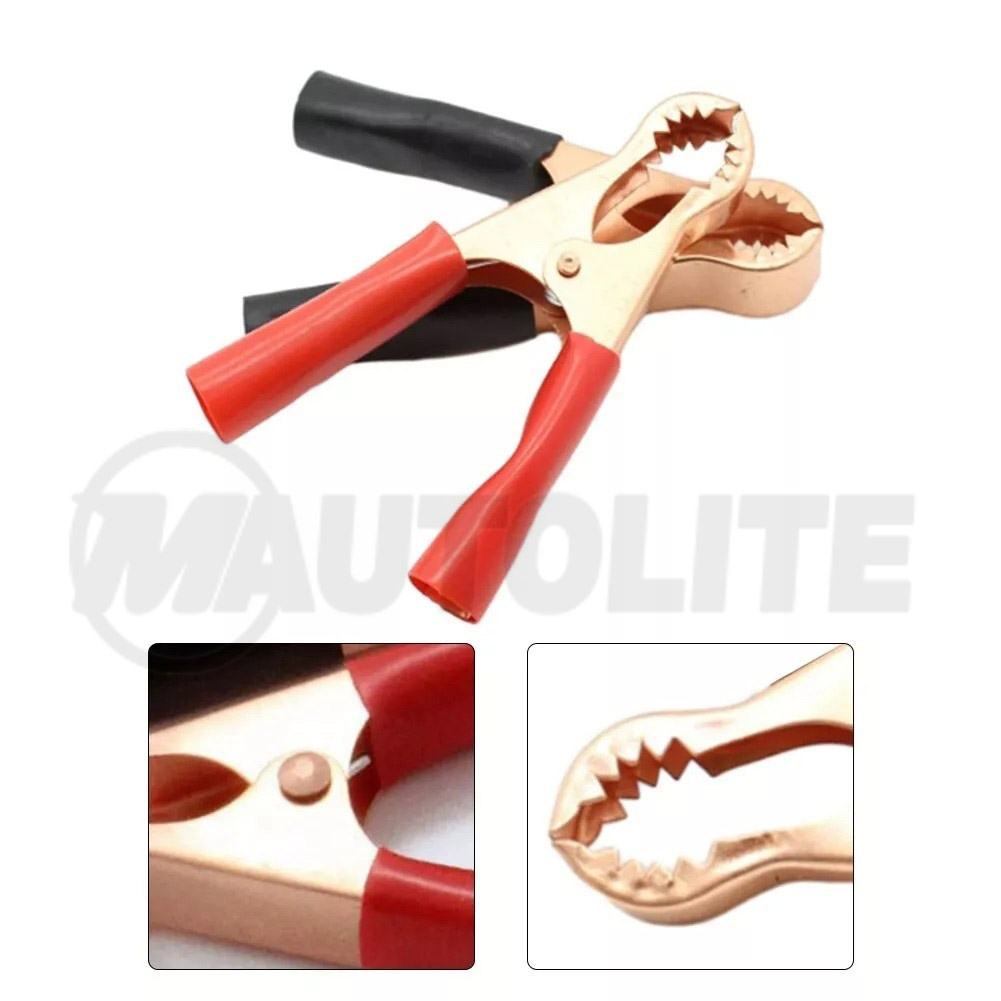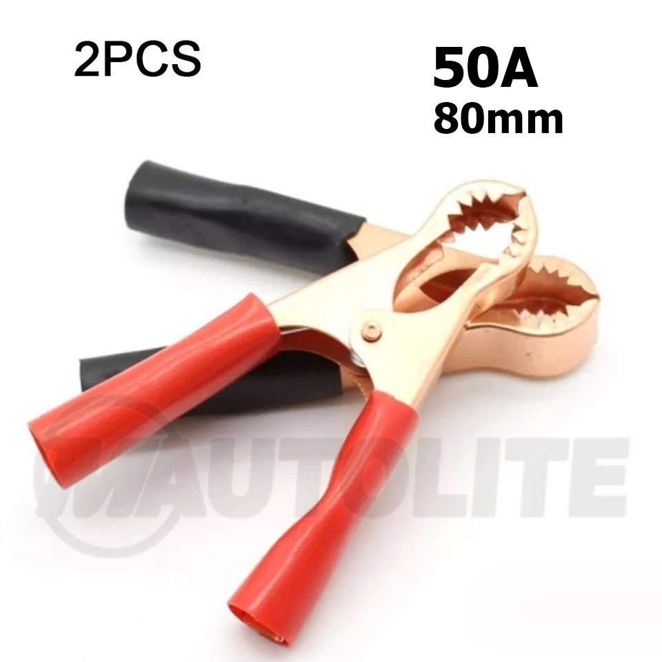 Par de clips de 50A y 80mm de largo con mangos aislados (1 rojo y 1 negro) anticorrosivos, perfectos para una conexión segura a la batería de tu carro.
