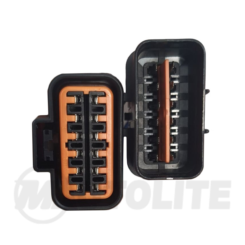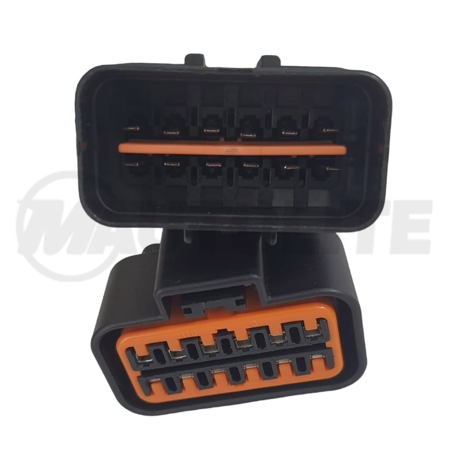 Conector impermeable macho-hembra de 12 pines ensamblado con alambre de calibre 16 AWG para uso automotriz.