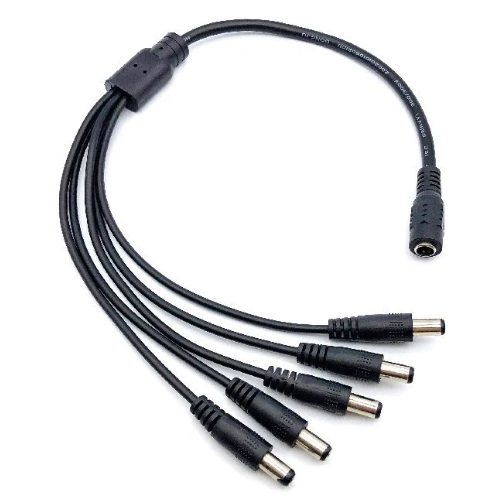 - Tiene 4 conectores machos de 2.1mm para las cámaras y un conector hembra para la fuente