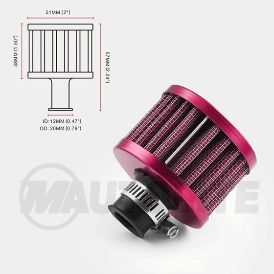 Filtro respiradero de 12mm para admisión fría (Cold Air Intake), turbo, tapa de válvulas o ventilación del sistema PCV.
