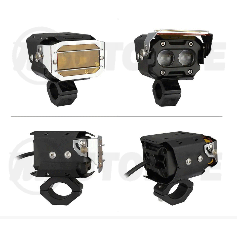 Los potentes focos para moto de 5500 lúmenes, mejoran notablemente la visibilidad en carretera, gracias a su excelente luz proyectada por lentes de cuarzo que iluminan hasta 250 metros.