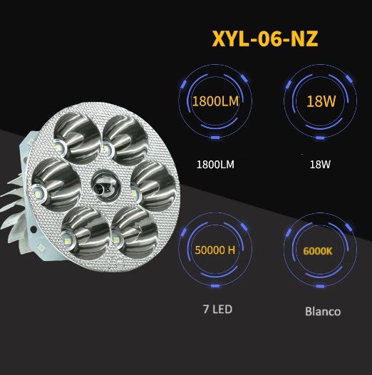 El proyector cuenta con 6 chips LED brillantes de 18W y 1500 Lúmenes, tiene luz alta y baja.
