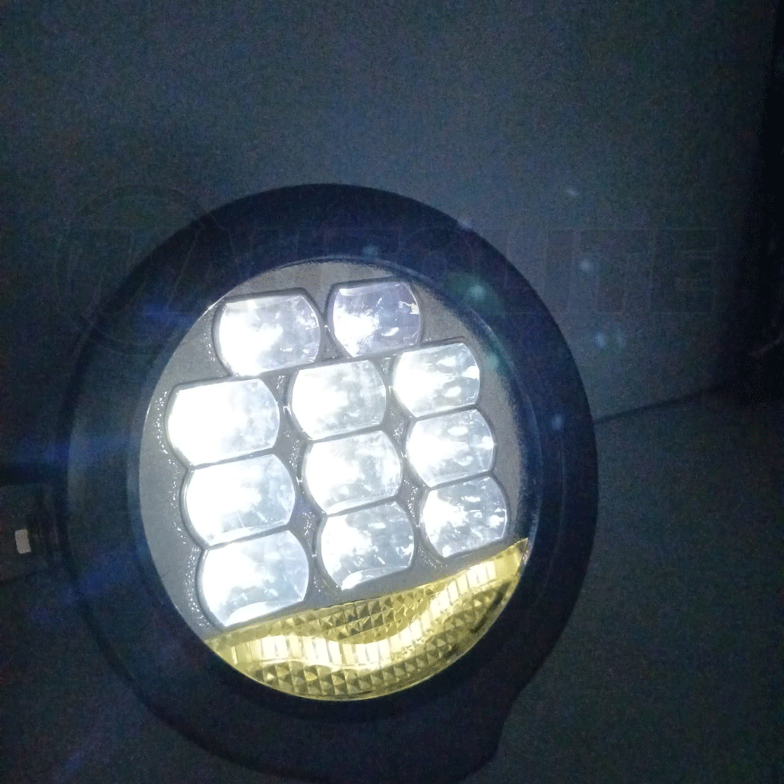 - Diseño redondo de 4 pulgadas de foco y 5” de carcasa robusta y elegante