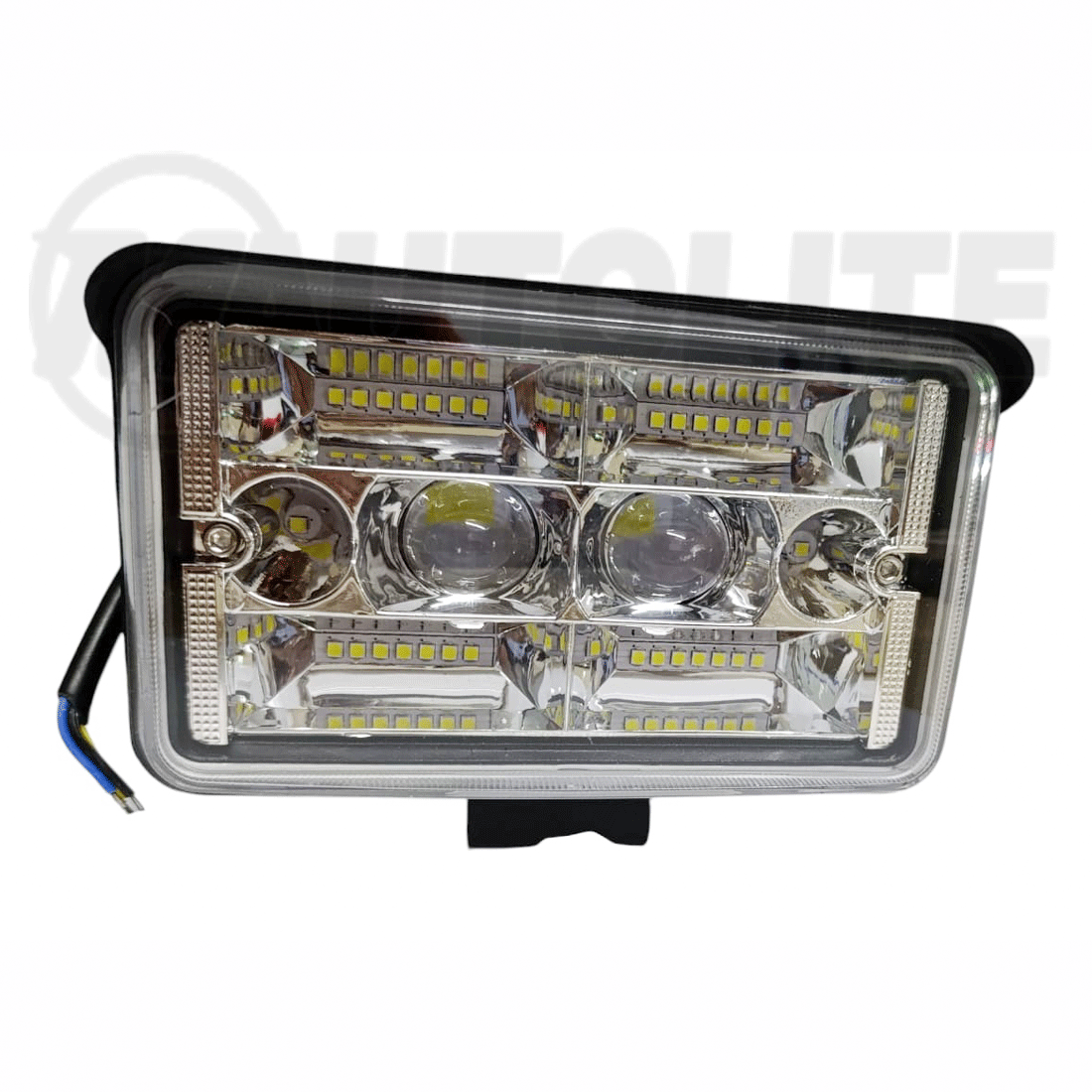 Neblinera LED rectangular de 6” x 3.5” con carcasa de metal en color negro.