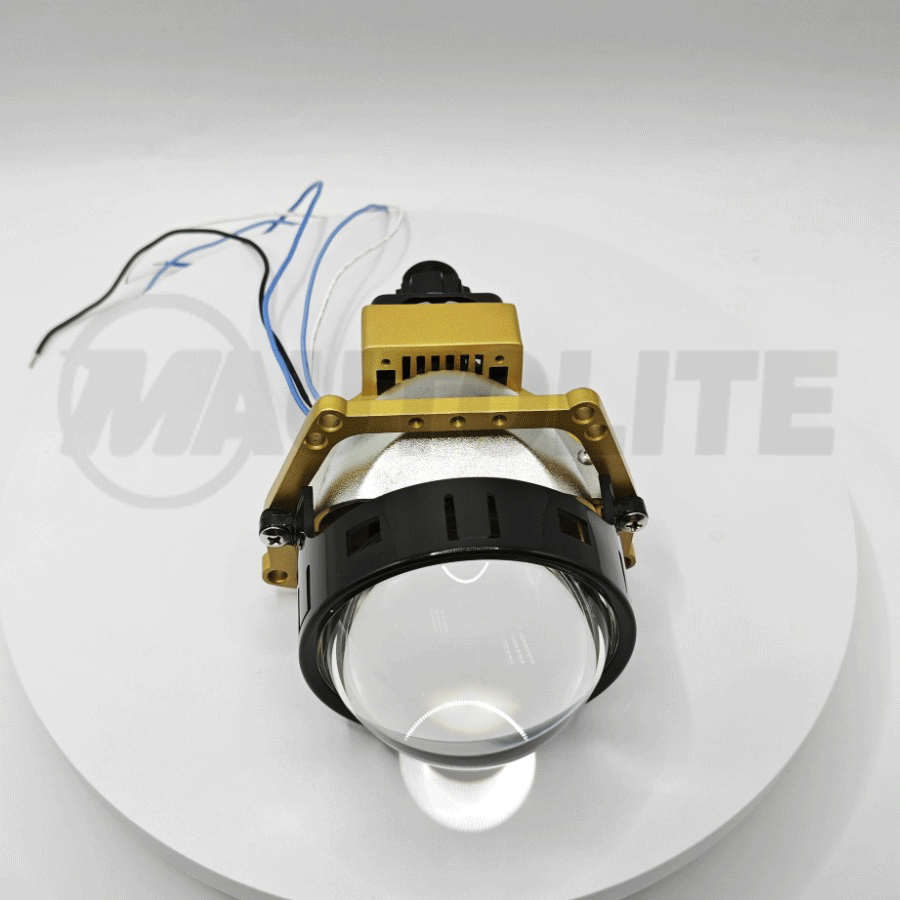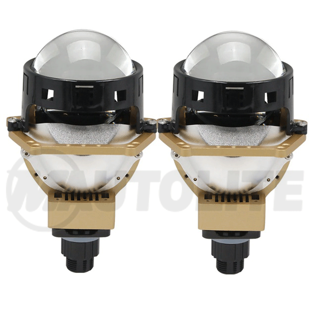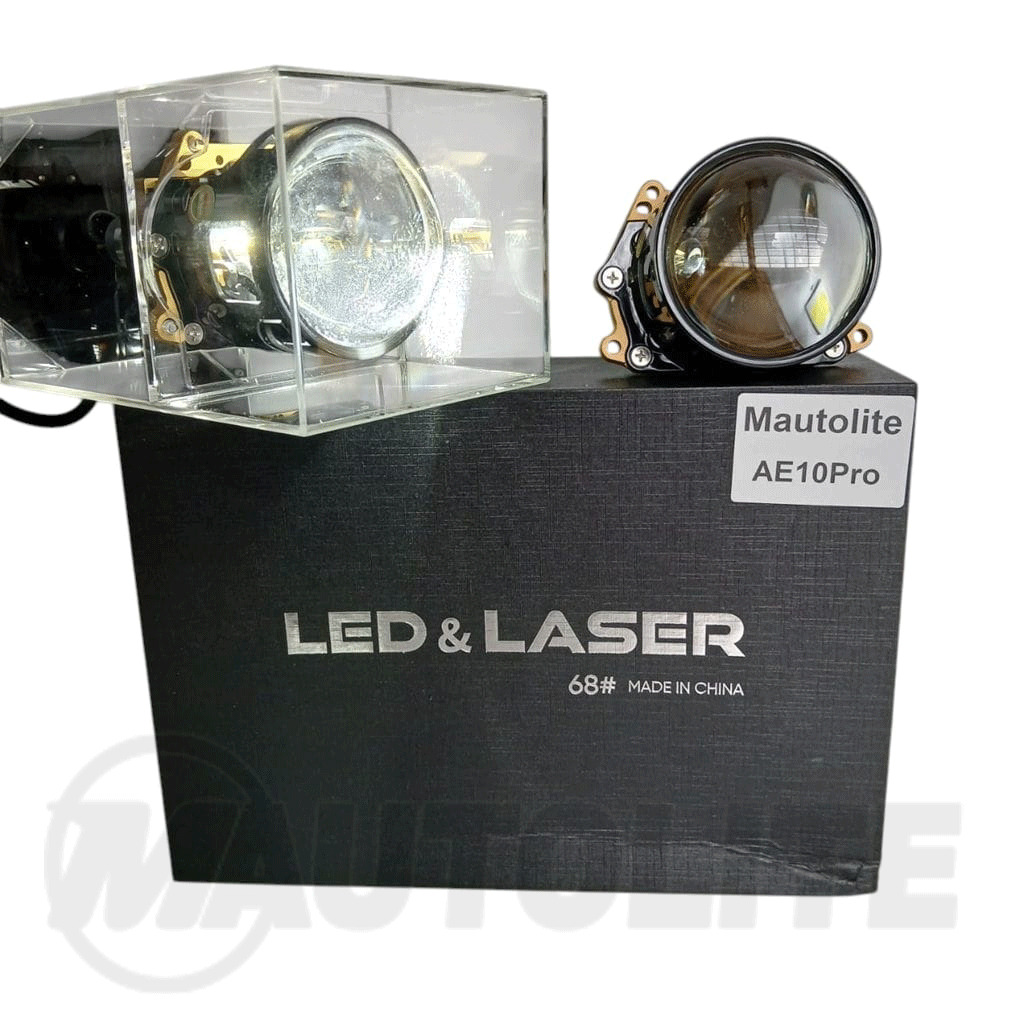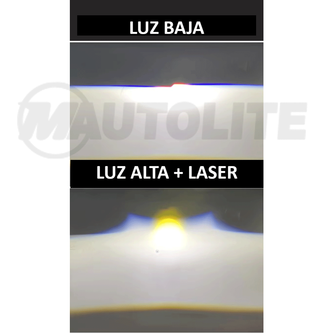 Juego de 2 proyectores LED de alto rendimiento con potente luz blanca, lupa de alta calidad y luz láser extra en color amarillo para máxima precisión.