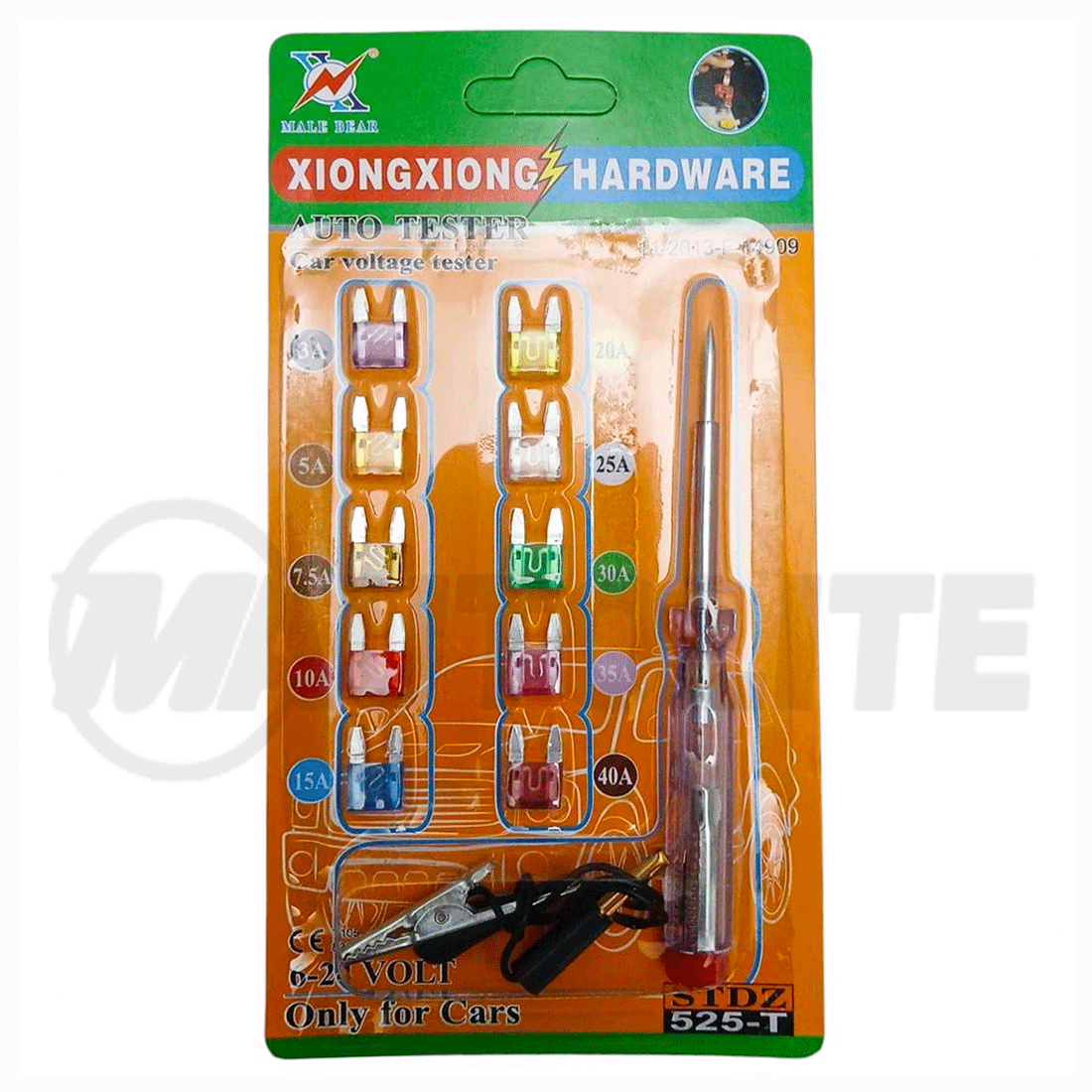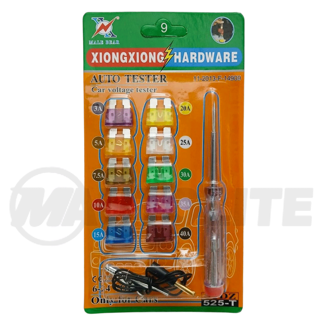 Este práctico combo incluye 10 fusibles de diferentes amperajes, indicados claramente en el envase para facilitar su uso. Además, viene con un probador de corriente (tester) para asegurar que tus circuitos estén funcionando correctamente. Ya sea para fusibles tamaño estándar o mini, contamos en los tamaños.