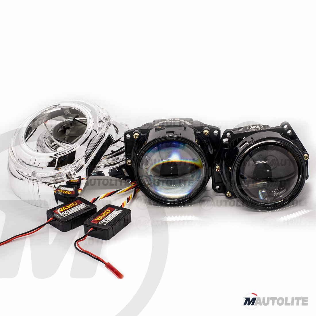 - Cubiertas de Ojos de Ángel LED COB (opcional): modo DRL + Modo de autoprotección. Los anillos de halo no solo hacen que su faro se vea más elegante, sino que también funcionan como luces de circulación diurna que hacen que su vehículo sea más visible y más seguro en la carretera tanto de día como de noche.