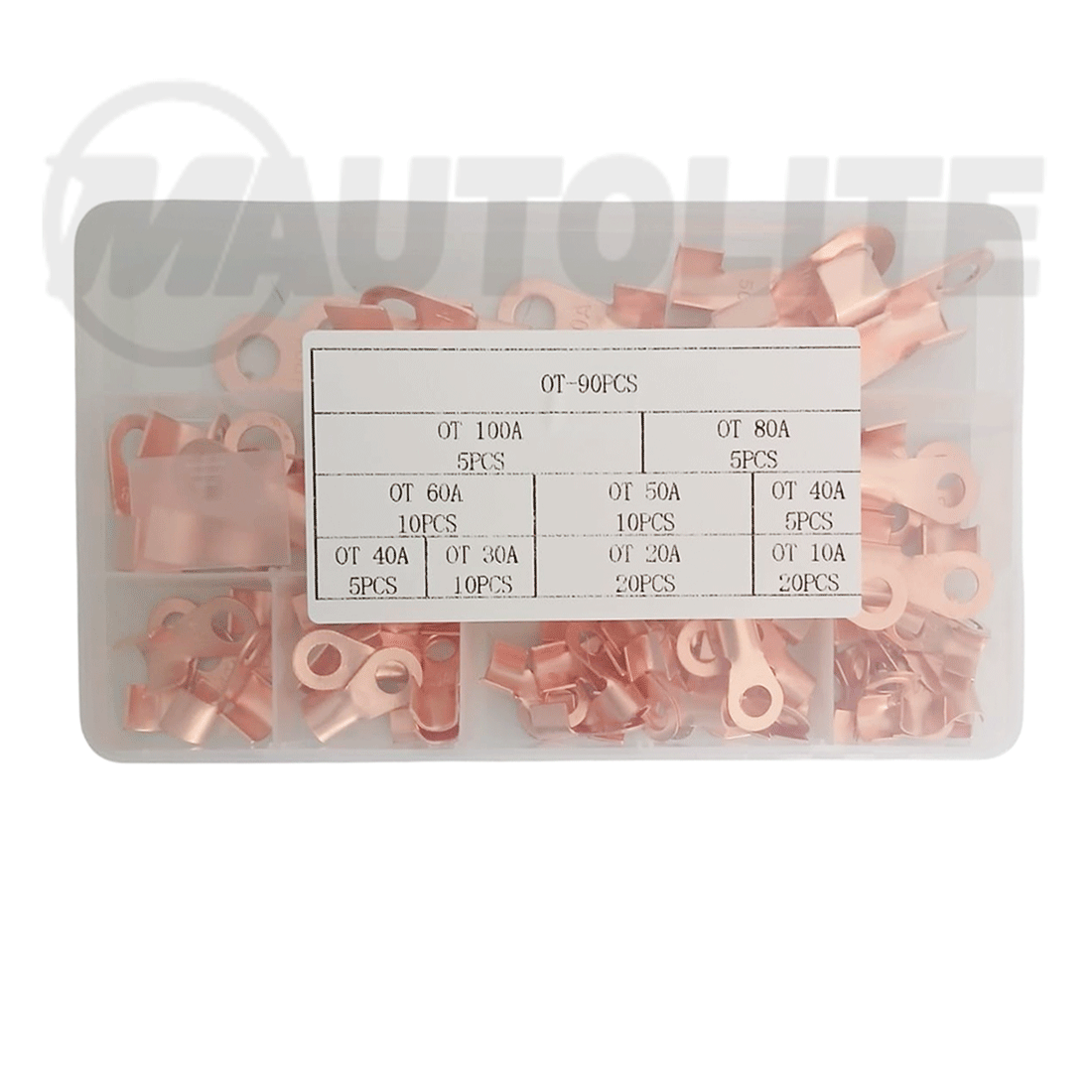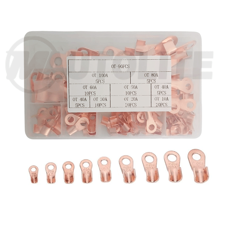 Set de 90 terminales de cobre no aislados, ideales como conectores de cable para batería.