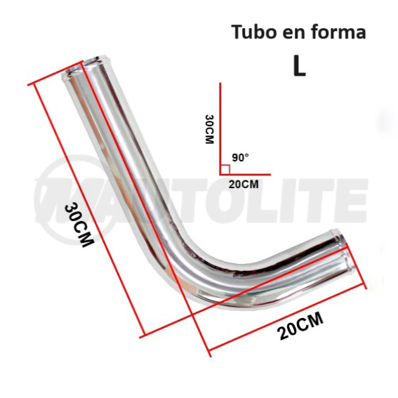 La longitud total de cada extremo del tubo es de 300mm x 200mm, con la curvatura de 90° fabricado con aleación de aluminio de alta calidad para una máxima durabilidad, anticorrosivo y resistente al desgaste, además tiene un acabado muy atractivo.