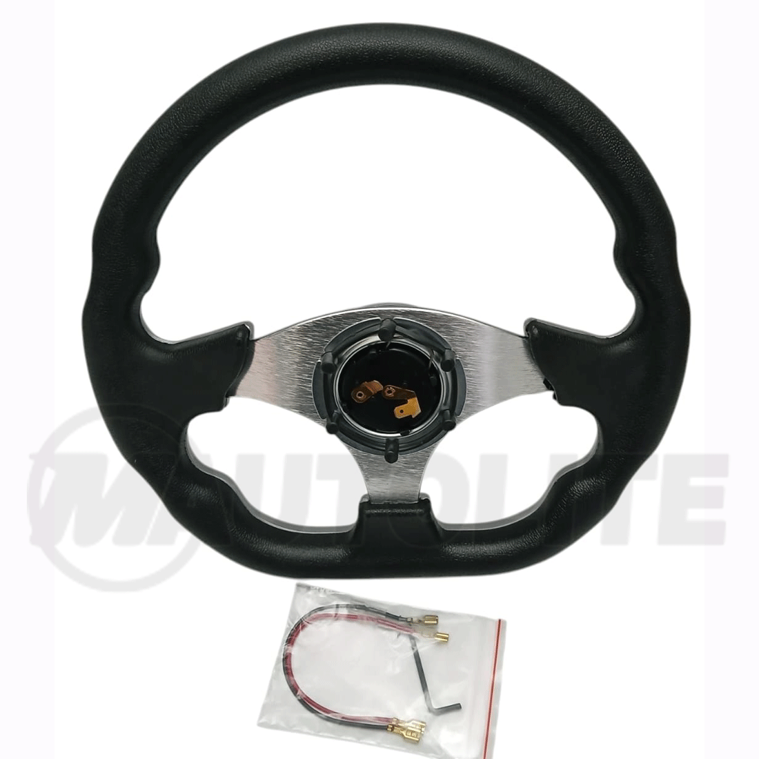 Dale a tu vehículo un look deportivo con este volante estilo D de 12.5 pulgadas, diseñado para mejorar el agarre, la comodidad y el control en cada manejo.